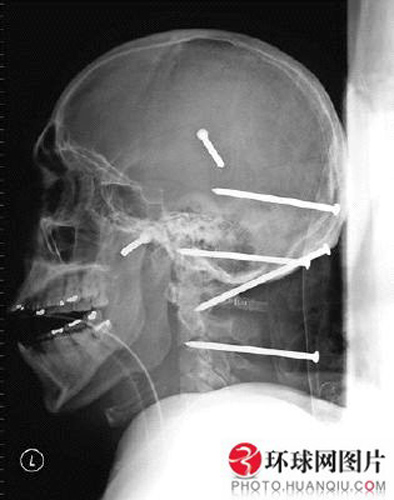 目前梅加头部没有任何一根钉子,但在2004年,当他在屋顶施工时不小心从高处跌落。跌落的高度并不致命,致命的本应是插入颈部和头骨的6根3.5英寸长的钉子。但是他奇迹般活了下来,原来这几根钉子差一点就扎到了脑干脊髓。