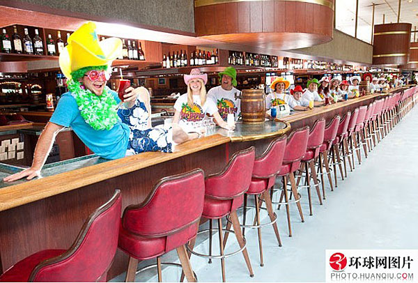 美国俄亥俄州南巴斯岛上的一家酒吧吧台长达123.7米,被誉为世界上最长的酒吧。