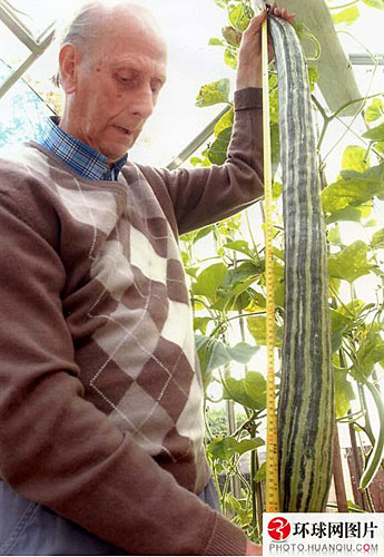 这根生长在英国的黄瓜长在2008年9月18日被测为全球最长皇冠,长度为104.78厘米。