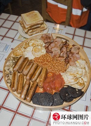 马里奥餐馆的这个英式早餐,由10个鸡蛋、10根香肠、10片熏肉、5根血肠和大堆的蘑菇及豆类组成。如果可以在20分钟内把它吃完,这餐将是免费的。