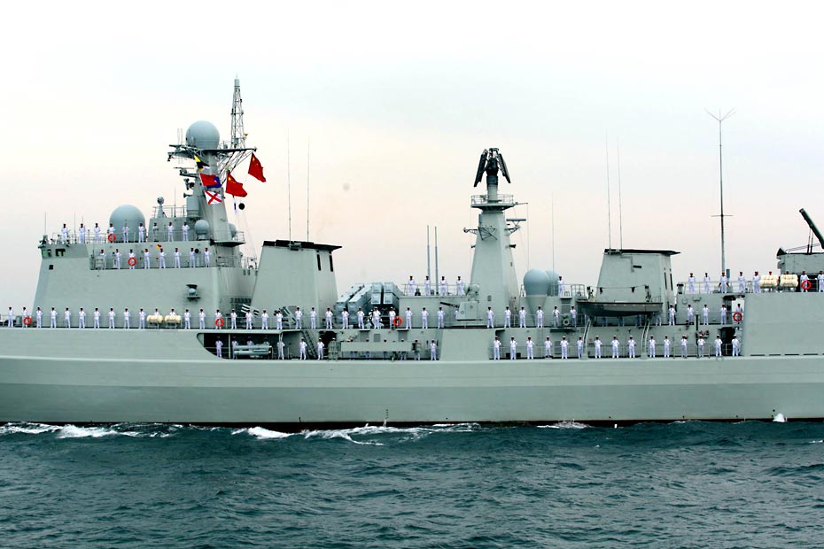 4月23日下午,为纪念中国人民解放军海军成立60周年而举行的海上阅兵在青岛附近黄海海域举行。海上检阅式分两个阶段,第一阶段为海上分列式,检阅中国海军的舰艇和飞机;第二阶段为海上阅兵式,检阅来自14个国家的21艘舰艇。中新社发 宋吉河 摄