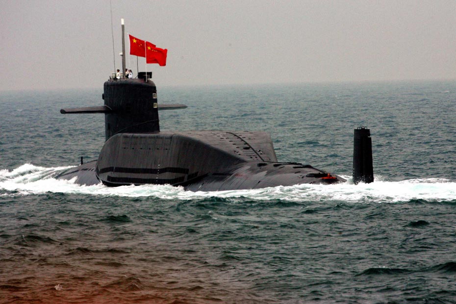 4月23日下午,为纪念中国人民解放军海军成立60周年而举行的海上阅兵在青岛附近黄海海域举行。海上检阅式分两个阶段,第一阶段为海上分列式,检阅中国海军的舰艇和飞机;第二阶段为海上阅兵式,检阅来自14个国家的21艘舰艇。图为接受检阅的中国海军核潜艇。中新社发 宋吉河 摄
