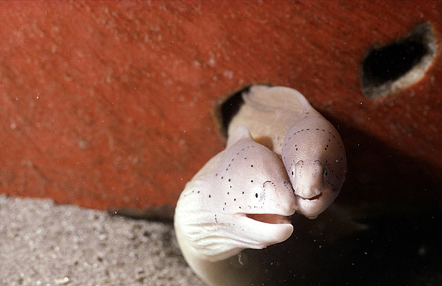 红海里的顶级杀手——细点双犁海鳗从其海床里的隐匿处滑了出来。在2006年,科学家在红海发现细点双犁海鳗跟石斑鱼已经进化出了一种协作捕食的行为,这是鱼类中的首次被记录的这种协同行为。石斑鱼摇晃着自己的脑袋,给隐藏的海鳗发出信号——猎物正隐藏在石斑鱼不能到达的地方,于是海鳗便可以去俘获战利品了。