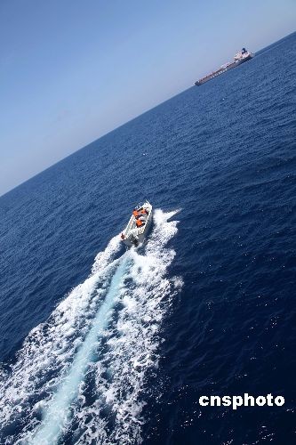 2009年3月18日,“海口”舰快艇在亚丁湾上划过一道浪痕.中新社发 孙自法 摄