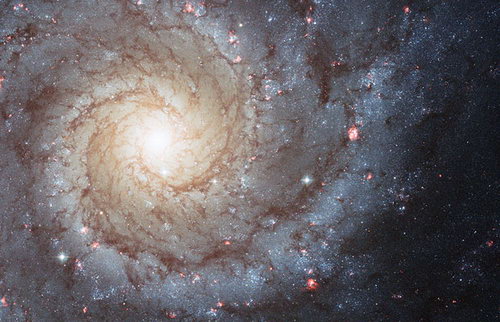 完美螺旋星系(M74)位于遥远的双语座,是已知最接近完美的螺旋星系。它拥有1000亿个恒星,图中是哈勃对其正面拍摄的照片。