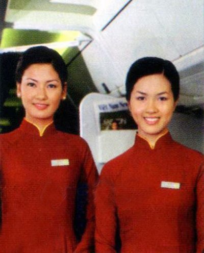 有板有眼的越南空姐:越南式传统服装,红色基调透露在这个国家的亲切与热情。收紧的衣口,独具特色,可见一个国家其有板有眼的气质。