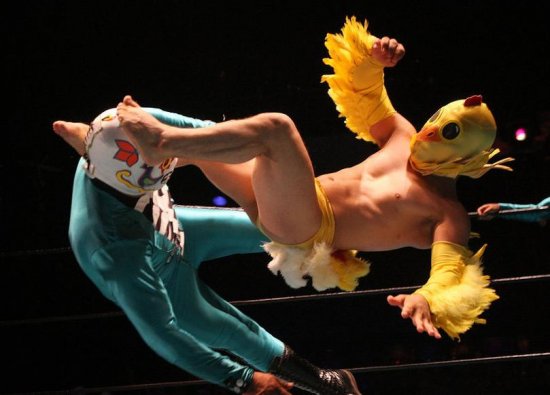 5月5日,美国洛杉矶,为庆祝墨西哥五月五日节,传统墨西哥蒙面摔角比赛在玛雅剧场举行。