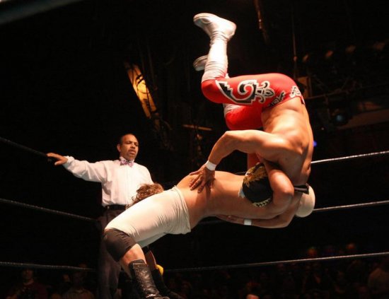 5月5日,美国洛杉矶,为庆祝墨西哥五月五日节,传统墨西哥蒙面摔角比赛在玛雅剧场举行。