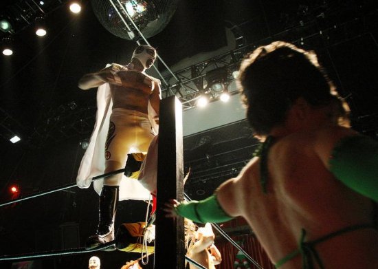 5月5日,美国洛杉矶,为庆祝墨西哥五月五日节,传统墨西哥蒙面摔角比赛在玛雅剧场举行。