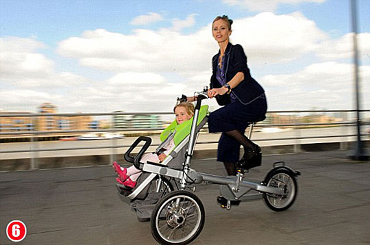 英国一家公司推出了一种可以将婴儿车变形成自行车的新型代步工具。该款车只用20秒就可从婴儿手推车变成三轮自行车并且操作简单。这款车是由铝合金制作的,预计售价为1695英镑。