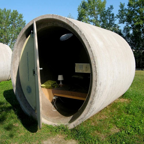 这是奥地利的——“Das Park Hotel”污水管道旅馆。这座旅馆位于奥地利的Ottensheim,也需要提前使用自动售票机办理入住手续,但是客人可根据自己需要按不同价格选择不同大小的“管道”。考虑到这是混凝土污水管道,的确很公平。