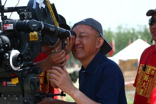 国庆献礼巨片《建国大业》拍摄进程已经过半,拍摄内容已经真正进入了1949年建国前的部分历史。2009年5月17日《建国大业》剧组在北京南苑机场拍摄了全片规模最大、气魄最足的一场戏——1949年3月25日,毛泽东主席在北平西苑机场的进行了新中国成立之前第一次阅兵仪式“西苑机场阅兵”。图为导演韩三平。