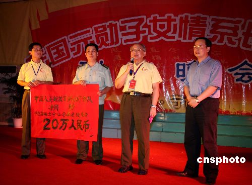 二十多位开国元勋子女7月20日晚在红军当年长征出发地之一的福建省三明市宁化县向淮土中心小学捐助建设资金20万元人民币。该活动总指挥、罗荣桓元帅之子罗东进将军,在宁化县举行的“开国元勋子女情系长征路联欢晚会”上,代表中国人民解放军96167部队现场捐款并讲话,用红军长征精神鼓励学生学习奋进。中新社发 田地 摄