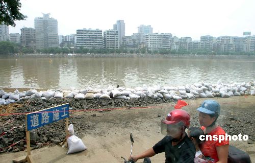 7月25日,韶关市民驾摩托车经过被洪水冲毁的堤岸。受台风“碧利斯”的影响,韶关大部分地区暴雨成灾,受灾人数73.12万人,淹没范围近730平方公里,倒塌和严重损坏住房7.6656万间,死亡52人,失踪66人,市区水浸至建筑物二楼,受淹水位最高达6米,洪水来势之猛、持续时间之长为历史所罕见。当地及广东省目前正全力赈济灾民,韶关虽仍能见到水灾留下的痕迹,但全市已恢复正常生活。中新社发 田地 摄