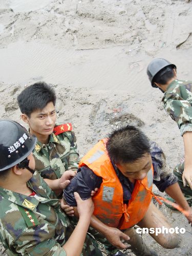 8月10日,浙江省温岭市一艘失去动力的渔船龙无法驶入避风港内避台,随着第八号超强台风“桑美”步步逼近,船上的五位渔民无法上岸,生命危在旦夕,船长向当地边防派出所发出求救信号。随后政府组织港监、边防、公安等相关职能部门展开施救,通过一个多小时的求援,赶在台风登陆前将遇险的五位渔民救上岸。中新社发 汤永祥. 摄