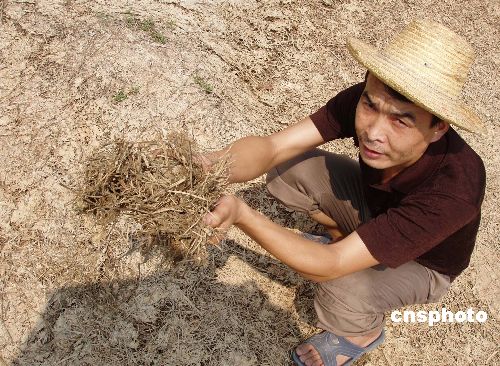 8月11日,重庆市奉节县农业局负责人介绍,奉节县30个乡镇遭遇60年一遇特大干旱, 50万人、13.51万头大牲畜出现饮水困难;88.1万亩粮经作物、21万亩经济林木受灾,直接经济损失达7140万元。日前,重庆市防汛抗旱指挥部发布特大干旱(1级)红色预警,紧急启动抗旱救灾应急措施。奉节县正在全力发动群众抗旱自救,力争将损失降到最低。中新社发 周会 摄