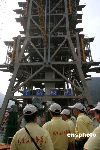8月11日,开国元勋子女在四川西昌卫星发射基地参观。图为周恩来侄女周秉德(左)与秦邦宪儿媳郭少妹在发射架前合影。8月10日,“情系长征路——开国元勋子女重走长征路”一行抵达70年前中央红军长征到过的凉山。中新社发 田地 摄