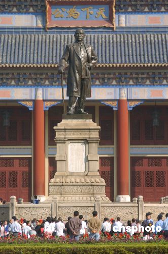 十二日上午,广东省各界在中山纪念堂举行纪念孙中山先生诞辰一百四十周年大会。中新社发 柯小军 摄