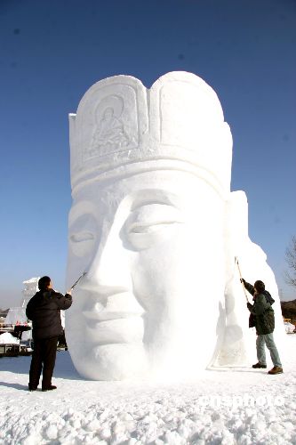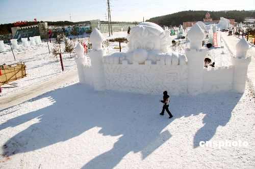 2007沈阳冰雪节开幕前夕,1月9日,在举办地,各种雪雕、冰雕基本完工,静侯游人观光。中新社发 赵敬东 摄
