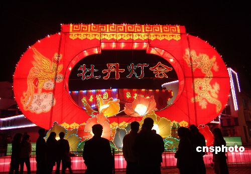 4月6日晚,河南省第25届牡丹花会灯会在洛阳牡丹公园开幕。40余组大中型彩灯和4000多盏宫灯、射灯、满天星等气氛装饰灯,把整个牡丹公园装扮的如诗如画流光溢彩,让游客尽情领略到了“昼赏牡丹夜观灯”乐趣。中新社发 巩卫东 摄