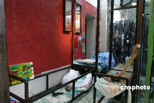 2007年5月22日17时,行为艺术家也夫和海容天天在北京今年最大的一场雨中结束了橱窗生存体验。他们的“橱窗计划”是从4月22日下午开始的。 中新社发 鲁谷 摄