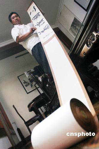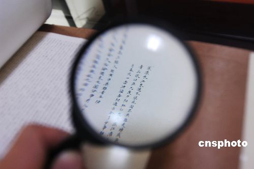 扬州一位64岁的老人罗和声,历时4年完成微书《三国演义》长卷。该卷以小楷字体书写,运笔苍劲,其书温雅秀逸。长卷微书《三国演义》纵30公分,横近60米,每字2x2毫米,全卷大约58万字。中新社发 王一卓 摄