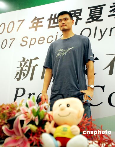 10月2日,篮球巨星姚明在上海出席2007年世界夏季特殊奥林匹克运动会新闻发布会时表示,公益活动对自己而言永远放在第一位,希望大家多关心智障人士。中新社发 汤彦俊 摄