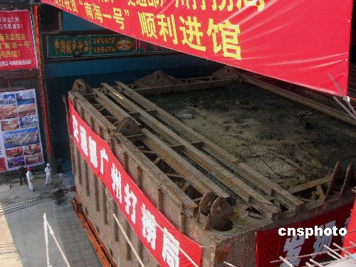十二月二十八日下午三时四十五分,“南海一号”南宋古沉船成功入住广东海上丝绸之路博物馆“水晶宫”。当日下午二时三十分,现场开始作业,十分钟之后,南海一号的“第一只脚”迈入水晶宫门口。三点十分左右,即将达到指定位置三米时,打捞沉井向左偏离,作业人员通过调整气囊位置和气压进行纠正。三点三十二分,沉井完全进入水晶宫。三点四十五分,南海一号到达宫内指定位置。中新社发 索有为 摄