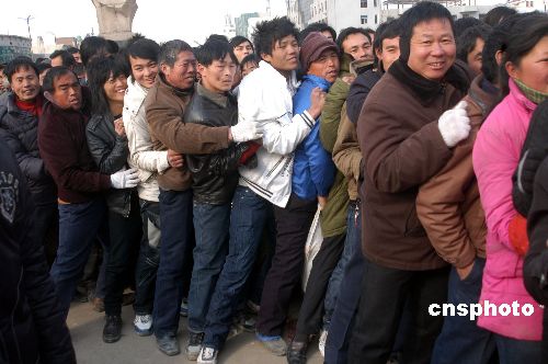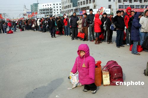 2月12日是农历正月初六,安徽省亳州火车站迎来节后客流高峰。依照我国民间“三六九往外走”的习俗,大批回乡过年的民工已开始返城,一些外出务工者再次与家人告别,开始新一年的打工生活。中新社发 张延林 摄