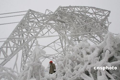 2月23日,全国第一条因暴雪灾害,导致输电线路铁塔倒塌的三峡电力送往华东的大动脉±500千伏湖北宜昌至上海华新直流输电线路,安徽境内抢修工作全部接束,中断37天的500千伏宜华线恢复贯通。1月17日,该输电线路﹟1146-﹟1153段4座位于大别山腹地安徽六安境内崇山峻岭中的巨型铁塔被冰雪压塌,线路严重受损。灾害发生后,安徽省电力公司500多名抢险人员和当地数百干部群众克服天寒地冻、山路陡峭等困难,奋力抢修,经过37天艰苦奋战,运送抢险物资150多吨,终于将4座倒塌铁塔重新修建完成,宜华线路全线贯通。中新社发 陈超平 摄