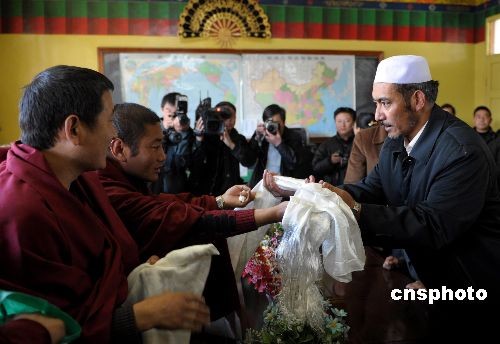拉萨大昭寺僧人向大清真寺阿訇献哈达