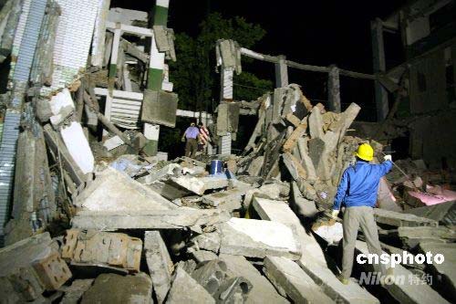 5月13日凌晨,距离四川汶川地震震中直线距离约30公里的四川绵竹市汉旺镇东方汽轮机有限公司在地震中受损严重,死亡人数已超过60人,目前仍有500余人生死不明。东方汽轮机厂厂区内裂缝严重。中新社发 郭晋嘉 摄