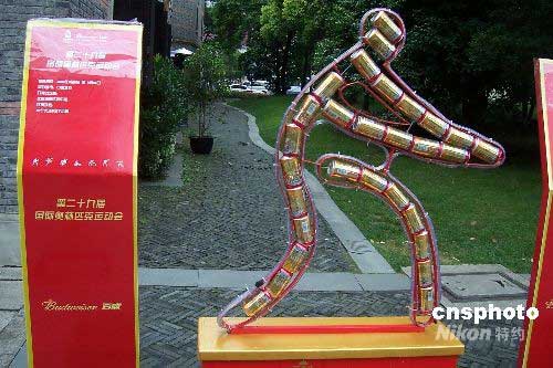 图:上海易拉罐雕塑展示奥运项目