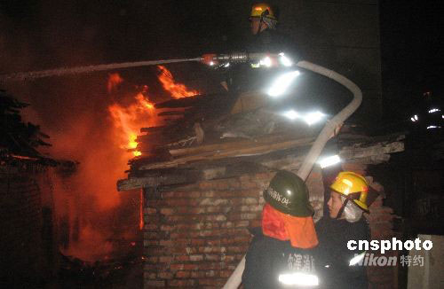 9月9日,黑龙江省哈尔滨市南岗区西大直街334号院内堆放木板等杂物的仓房起火,居住在仓房附近楼内的居民安全撤出,消防战士奋战到5时30分左右,终于控制火势。此次火灾没有造成人员伤亡,火灾起因还在进一步调查中。中新社发 王忠言 摄