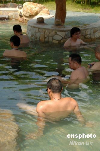 9月21日,广东森波拉首届“天体沐浴节”在一度假森林火山温泉揭开神秘面纱,100多名“欢乐男女”沐浴在阳光、泉水、竹林花香中。“天体浴”被当作一种回归自然和享受健康的方式在广东逐渐被大众所接受。中新社发 梁永强 摄