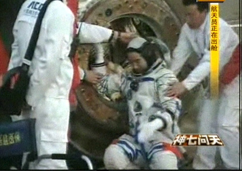图:翟志刚、刘伯明、景海鹏全部出舱