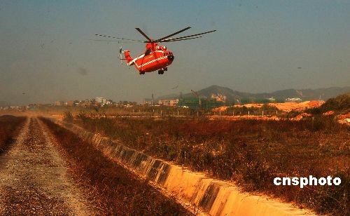 11月15日,随着一架米-26TC直升机降落梧州机场,拉开了2008年广西秋冬季森林航空消防序幕。本次共有3架大型直升机加入广西秋冬季航空森林消防工作,这是国家林业局西南航空护林总站首次动用如此规模力量支持广西航空护林。它们将航空护林范围覆盖广西的南宁、柳州、来宾、桂林等,同时向湖南、广东辐射。中新社发 谢志刚 摄