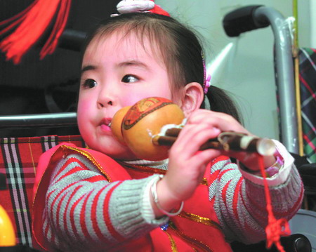 “春晚的导演叔叔和阿姨们,我们渴望上春晚!”昨日下午3时许,一支由12名地震致残的孩子组成的“轮椅乐团”,在川大华西医院地震康复中心举办了一场葫芦丝演奏会。表演结束后,孩子们喊出了“渴望上春晚”的心声。据悉,“轮椅乐团”的平均年龄仅10岁,其中最小的是3岁的宋馨懿。