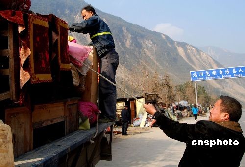 12月26日,北川第一羌寨--猫儿石“吉娜”羌寨竣工,当地羌寨居民开始陆续搬进新居。中新社发 胥辉 摄