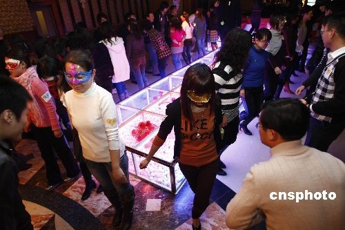 12月27日,百余名单身青年在北京参加一场化妆舞会。年轻人在欢快的乐曲中翩翩起舞。面具下的女青年抛开羞涩,与男舞伴窃窃私语。该活动的初衷也是为了引导年轻人在择偶时抛开外在条件,认识到“相容成就幸福婚姻”才是健康婚恋理念。中新社发 杨影懿 摄