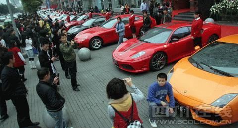 众多豪车引来市民围观