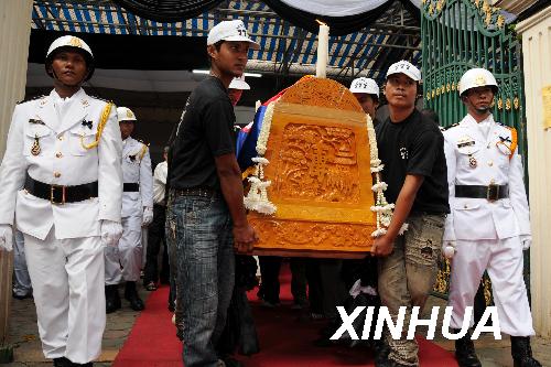 11月15日,在柬埔寨首都金边市,工作人员搬运柬埔寨国家警察总监霍伦迪的灵柩。当天,霍伦迪的遗体被运往其故乡柴桢省。本月9日,霍伦迪乘坐的直升机在柴桢省坠毁,机上4人全部遇难。新华社记者夏林摄
