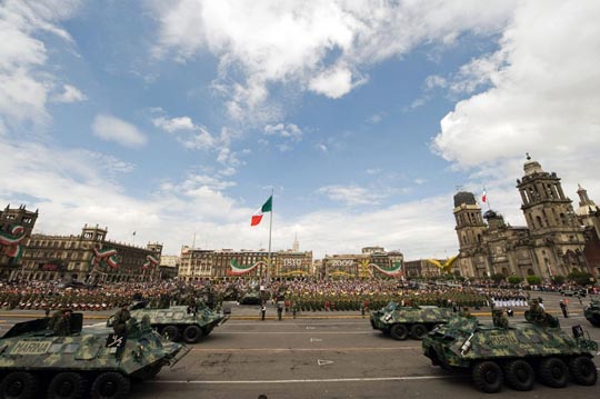 9月16日,墨西哥庆祝独立199周年,在首都墨西哥城的宪法广场举行了盛大的阅兵式。