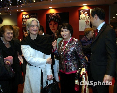 当地时间十二月九日晚中国驻法使馆在巴黎中国文化中心举办昆曲艺术赏析会。法国总理菲永夫人佩内洛普(左二)在观看了昆曲多个剧目的演出后表示,中国的昆曲是一门伟大的艺术!中新社发 吴卫中 摄