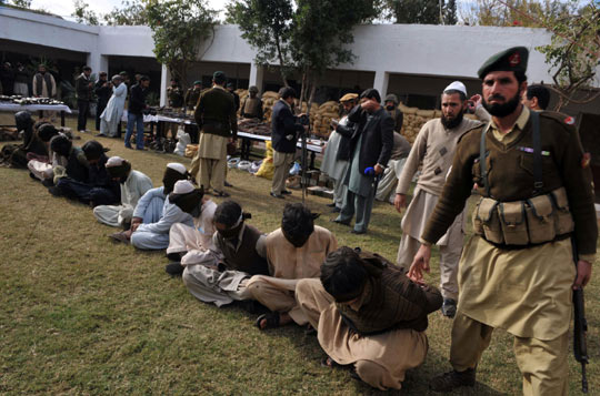 12月12日,在巴基斯坦西北部开伯尔部落地区,巴基斯坦军方抓获多名塔利班武装分子,缴获大量军火。