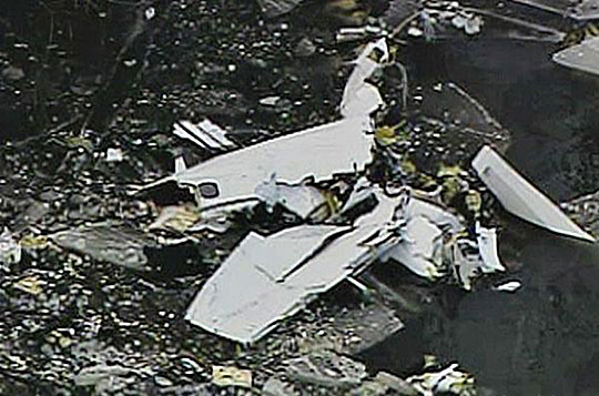 1月5日,一架小型运输机在美国芝加哥西北郊的一片森林中坠毁,目前已证实机上两名人员死亡。图为飞机失事现场的电视画面。