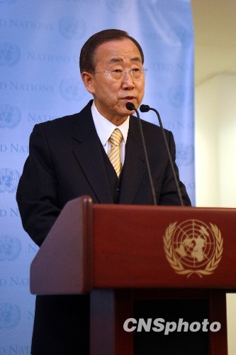 联合国秘书长潘基文二十七日在联合国总部表示,截至当日上午,确认在海地地震中遇难的联合国工作人员总人数已达到八十三人,另有三十二人依旧下落不明。中新社发 孙宇挺 摄