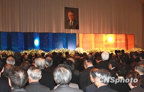 当地时间2月2日,日本著名画家、日中友好协会名誉会长平山郁夫的追思会在东京举行,日本前首相森喜朗、村山富市,日本皇室代表三笠宫崇仁前来出席。图为上午11时,全场嘉宾起立为平山郁夫先生默哀。中新社发 关妍 摄
