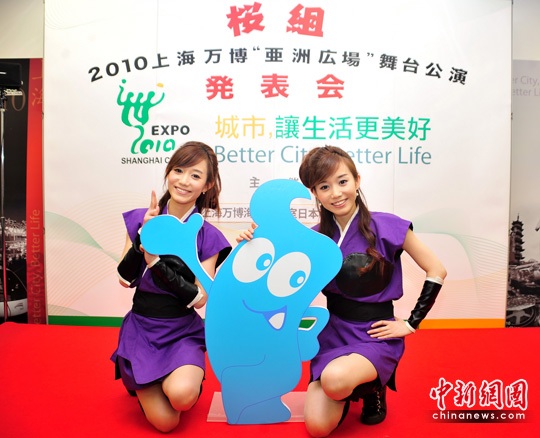 3月30日,在日本发展的中国双胞胎少女组合樱组,获得上海世博会的邀请,将在5月16,17日两天,参加上海世博会场内亚洲广场的演出。届时,她们会身穿价值千万日元的和服表演太鼓,展示日本文化。中新社发 孙冉 摄