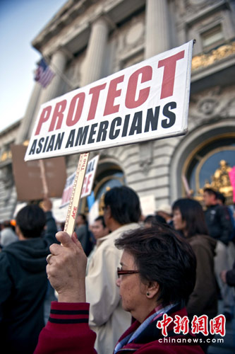 当地时间5月4日,逾千名亚裔在旧金山市政府前集会,对近期发生的多起亚裔遭受恶性暴力案件表达强烈愤怒,要求市府和警方正视现实,采取有效措施,切实保障亚裔民众的安全和权益。中新社发 陈钢 摄